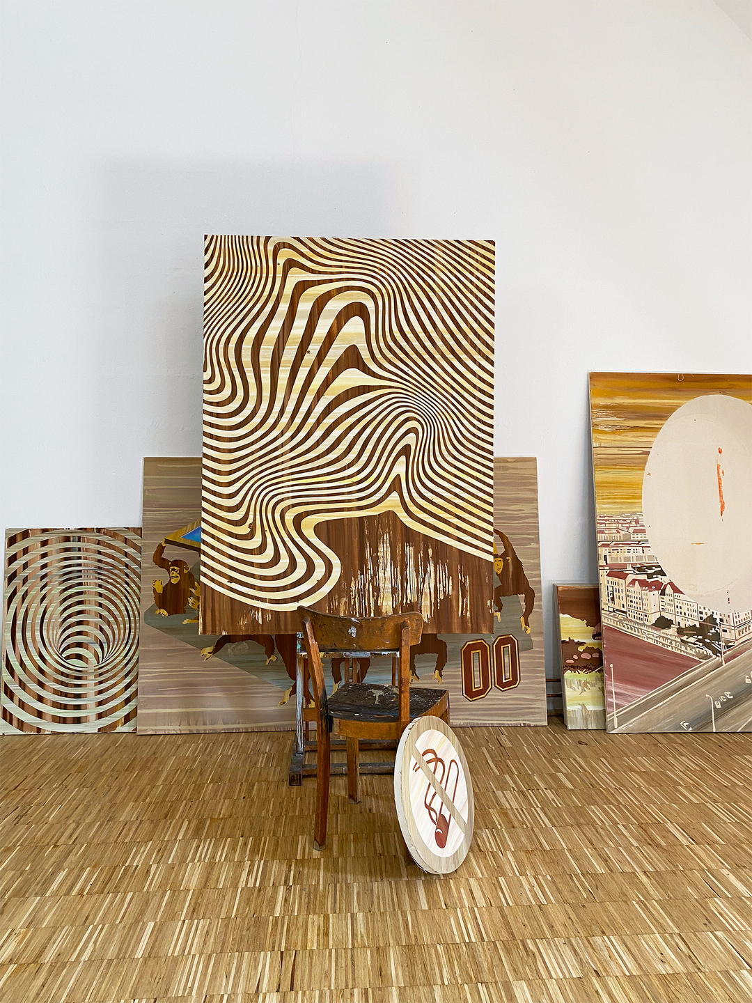 Die Ausstellung im Kunstverein Rotenburg Keine Kippen, dann halt malen zeigt u. a. eine Auswahl ihrer malerischen Werke, die das Thema Drip-Painting variieren und die sie nicht nur an der Wand, sondern auch im Raum installiert. Zufällige Laufmuster in diesen Arbeiten werden durch Maskierung und Rotation des Bildkörpers in mehrere Ebenen gelegt und einer Intarsienarbeit gleich durch kontrolliert gesetzte Bildelemente ergänzt.
